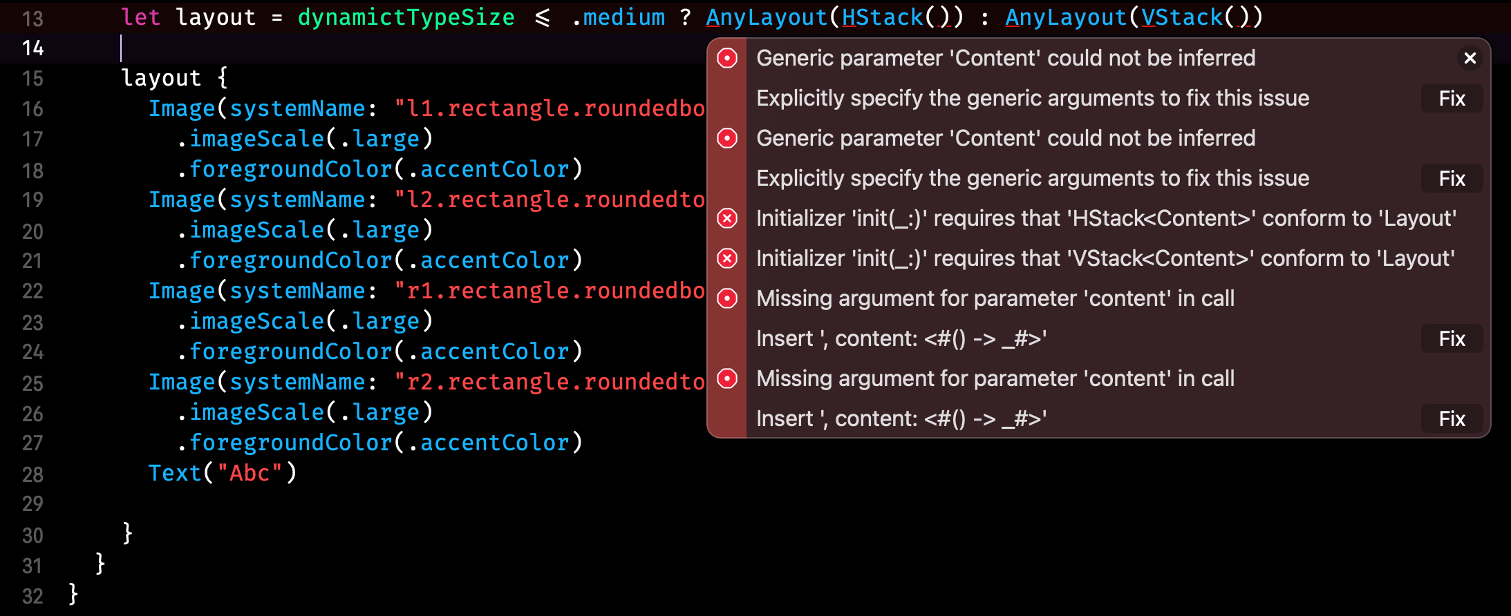 協議,所以 WWDC 裡以動畫切換兩者排版的範例程式會直接編譯不過 ☺️,如下: