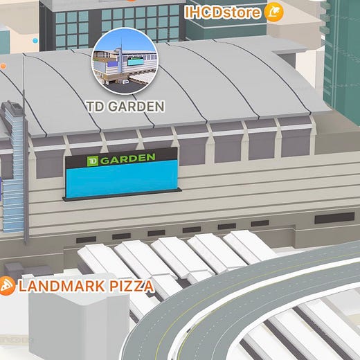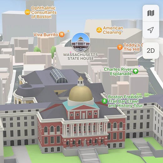 Apple Map 在部分大城市有提供 Detailed City Experience,最近開通了 Boston,許多人對各種細節津津樂道,包括花園博物館從天井玻璃可看到室內細節,以及 dark mode 時地標的夜晚面貌。我住的城市也有開通,是個都市踩點的好用功能呢!